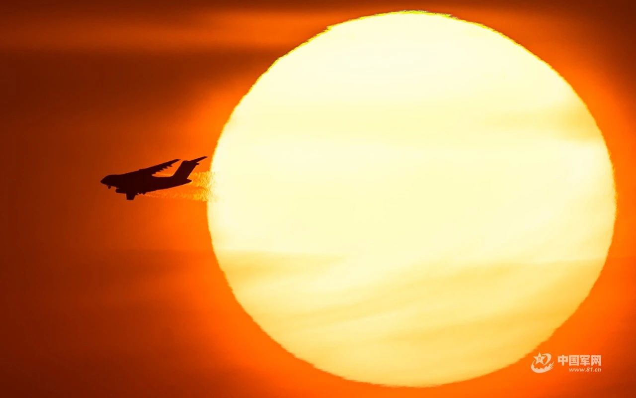 【每天一张新壁纸 #“换”醒战斗力#】运-20飞机训练归来,正好掠过太阳,摄影师抓拍到这个难得又珍贵的“飞机凌日”影像。