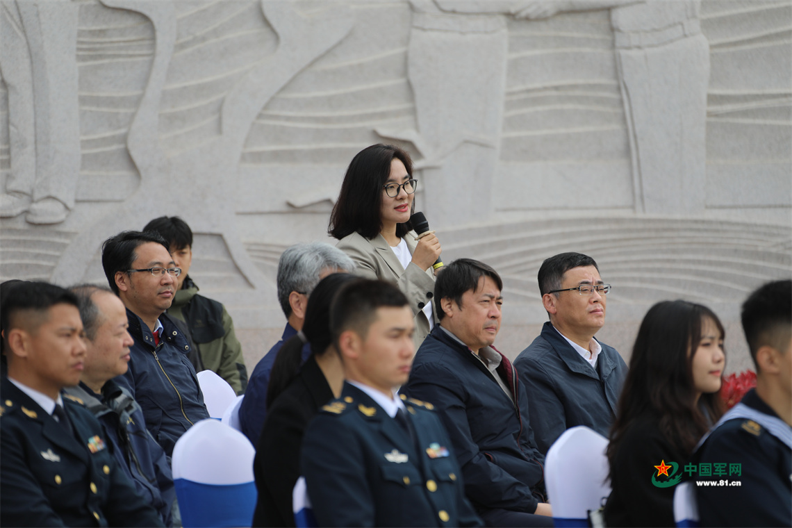 南昌舰女操舵兵徐文茜在活动现场回答师生提问。张彬 摄