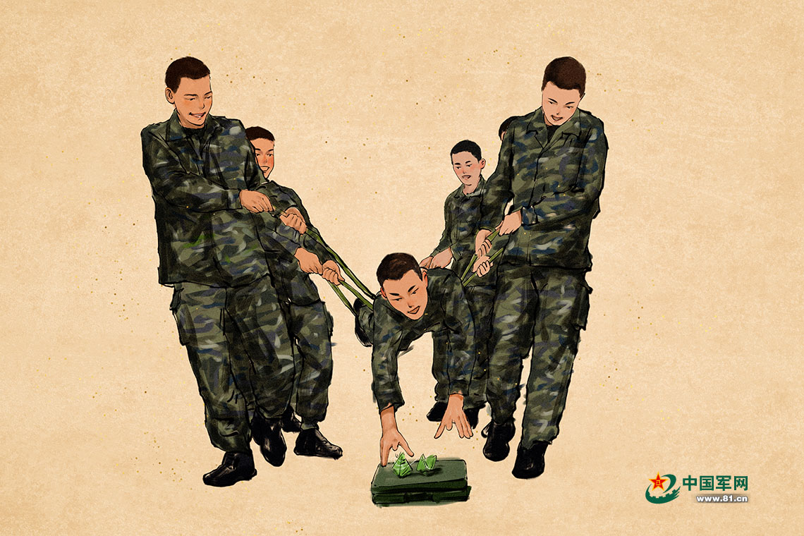 端午节是中国的传统节日之一,当端午走进军营,会有怎样的精彩?让我们通过一组国风漫画,看看兵哥哥的端午节!