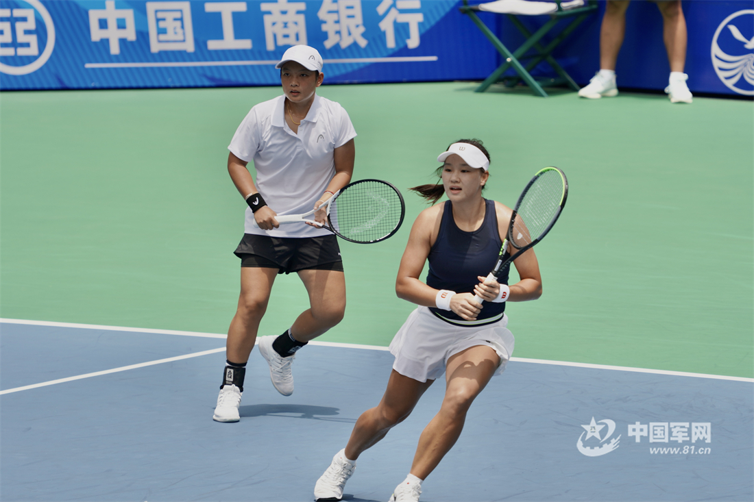 中国队选手郭涵煜和蒋欣玗在比赛中。中国军网记者 孙悦 摄