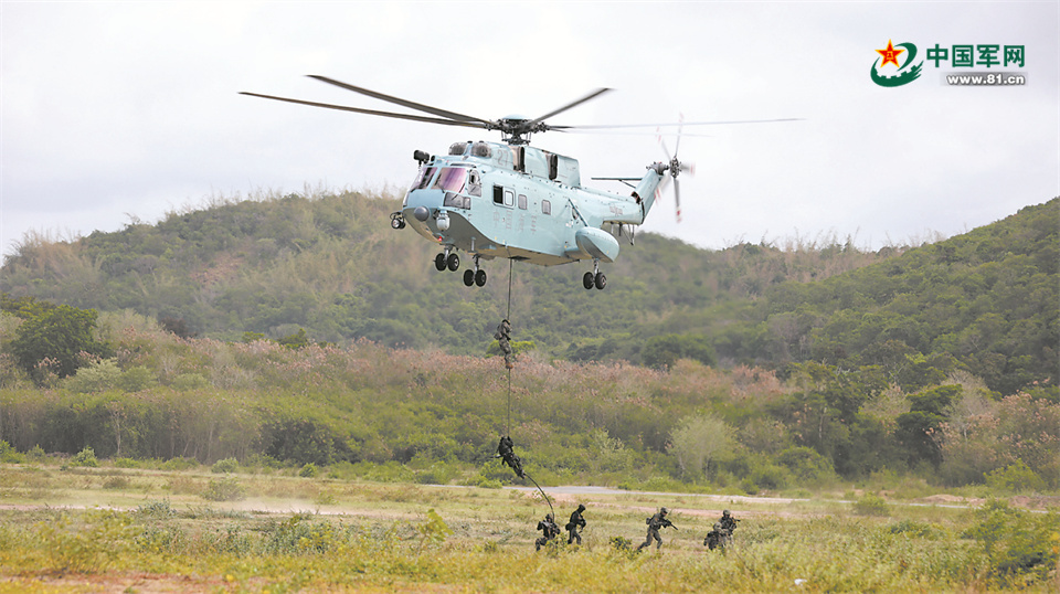 中泰双方陆战队员进行混编滑降训练。高国敬 摄
