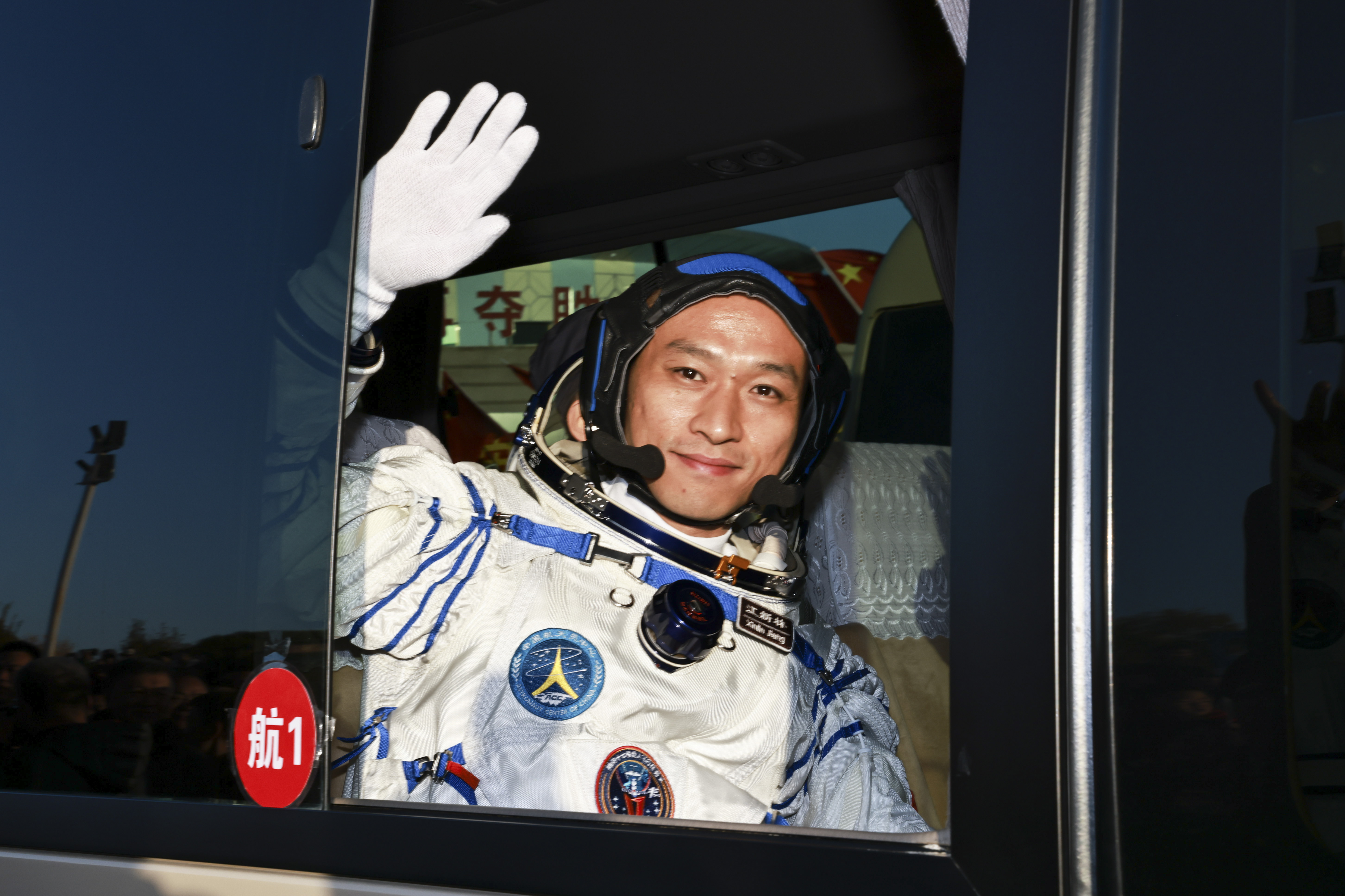 10月26日上午,神舟十七号载人飞行任务航天员乘组出征仪式在酒泉卫星发射中心问天阁圆梦园广场举行。这是航天员江新林在出征仪式上。新华社记者 李刚 摄