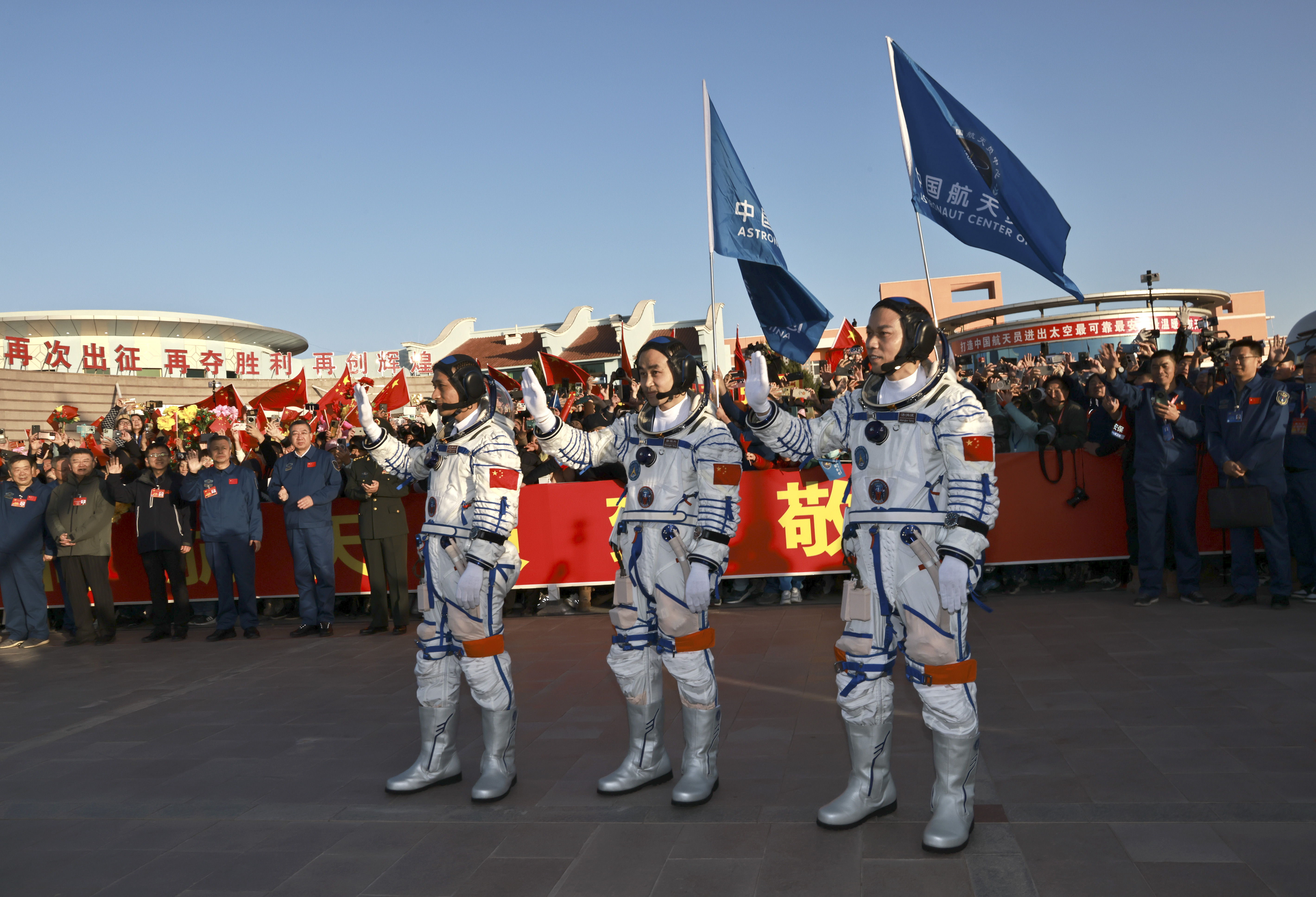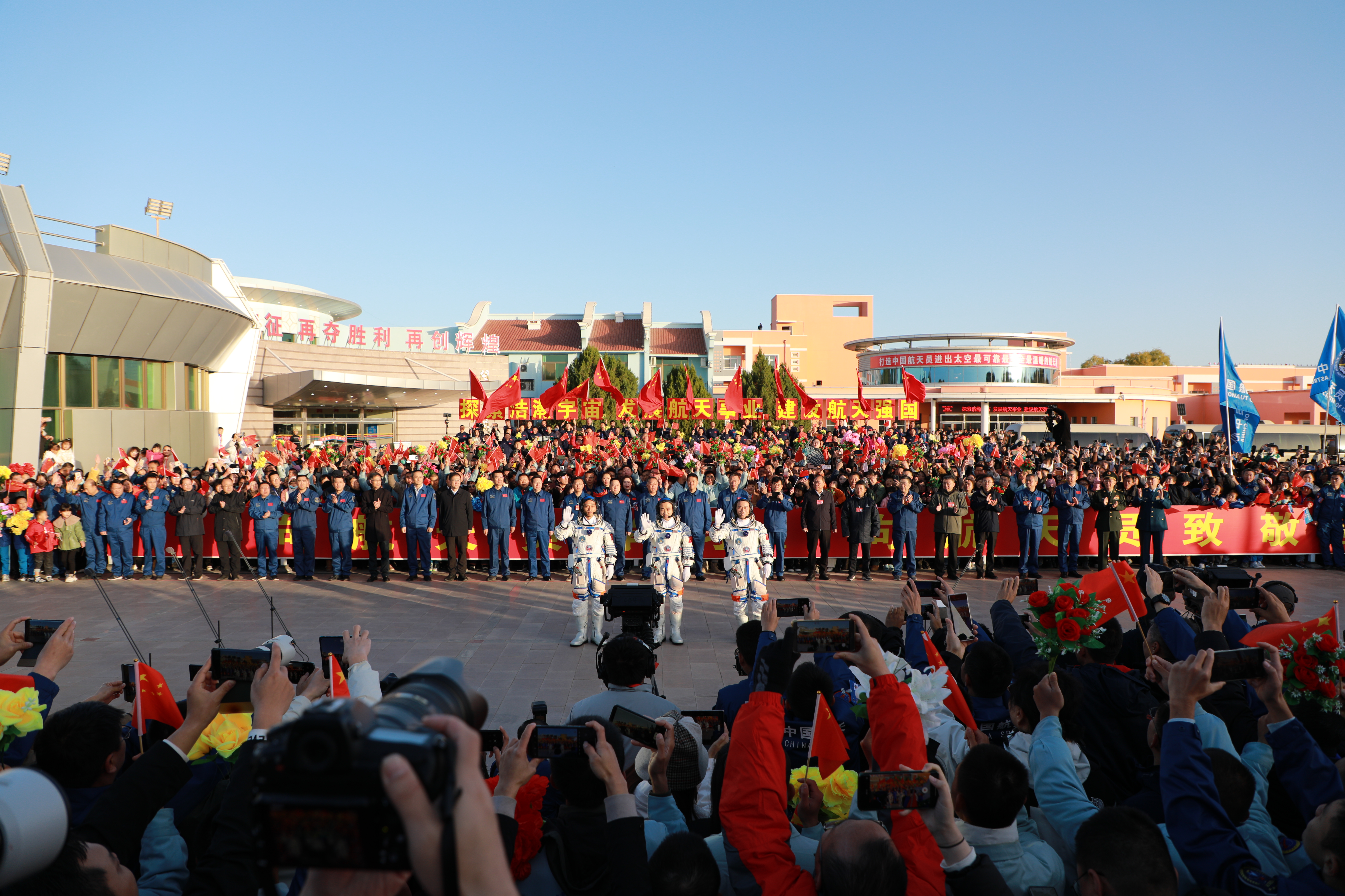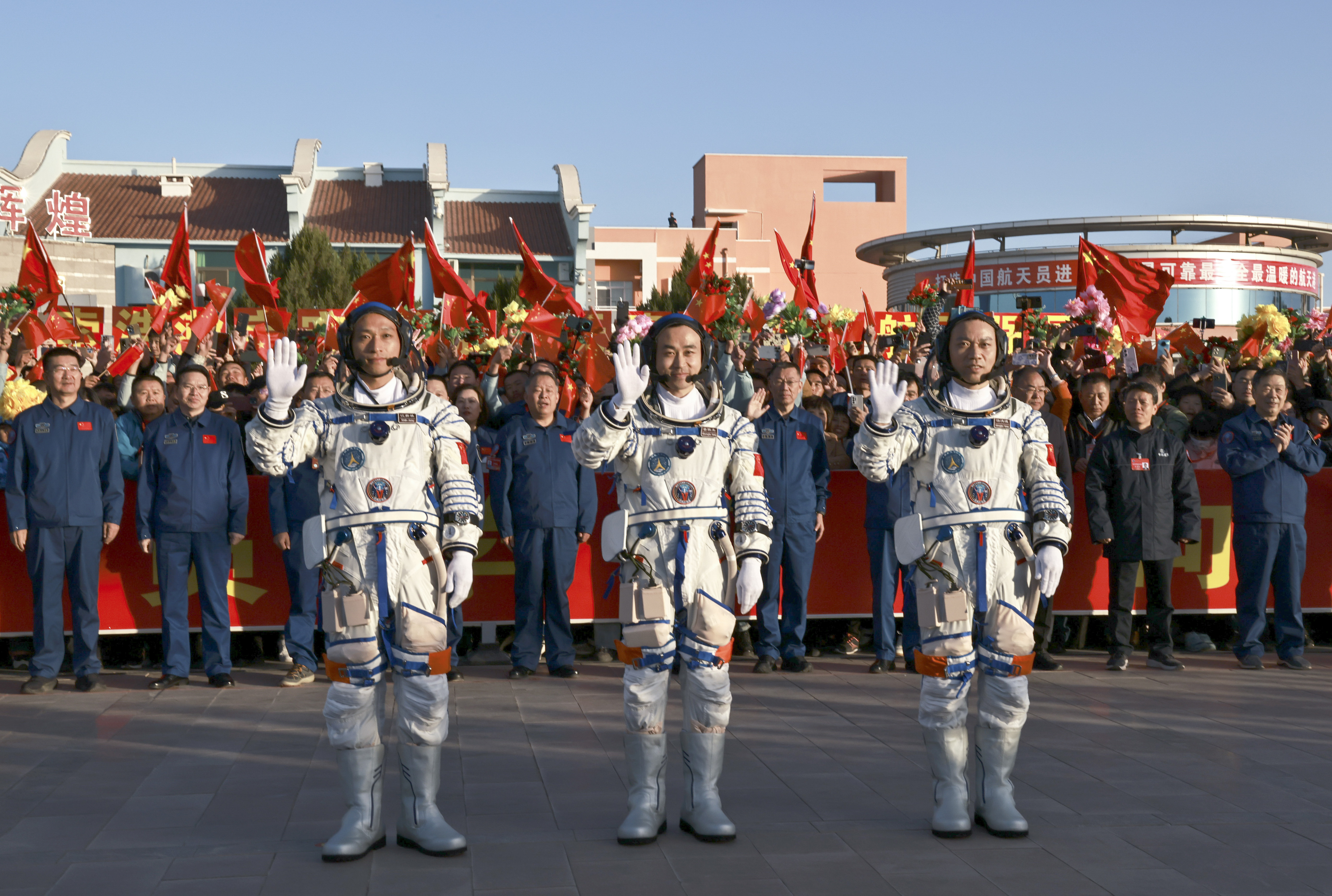 10月26日上午,神舟十七号载人飞行任务航天员乘组出征仪式在酒泉卫星发射中心问天阁圆梦园广场举行。新华社记者 李秉宣 摄