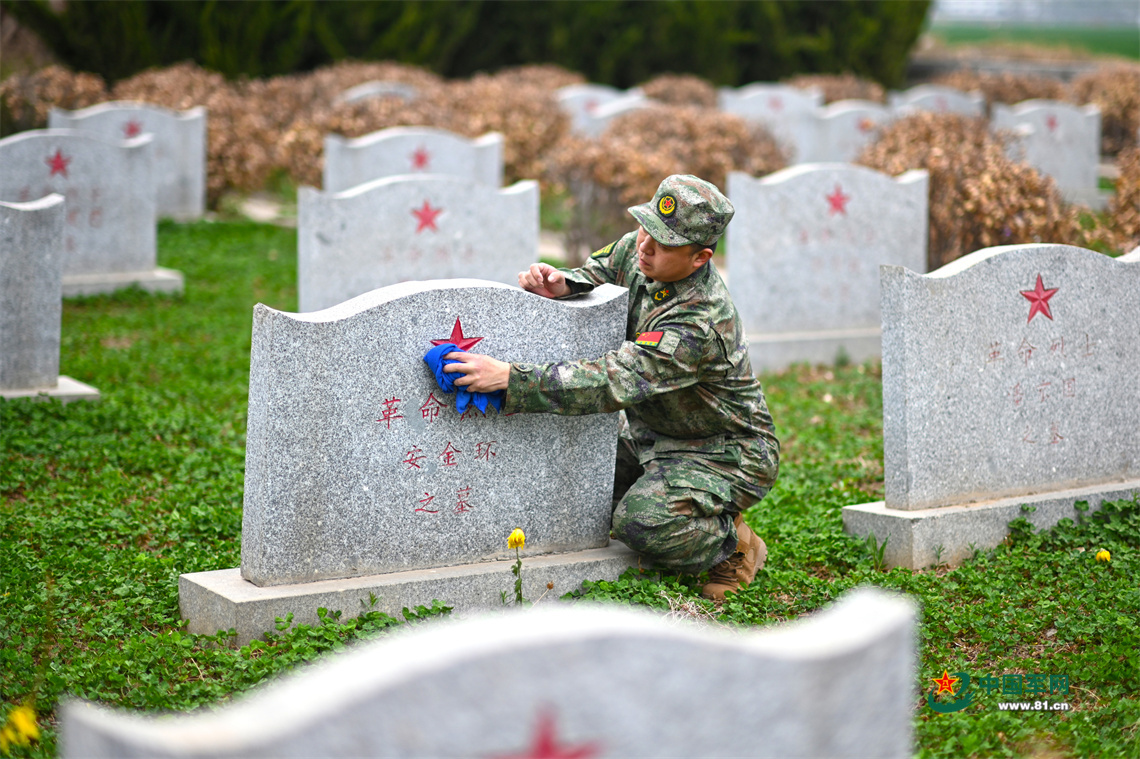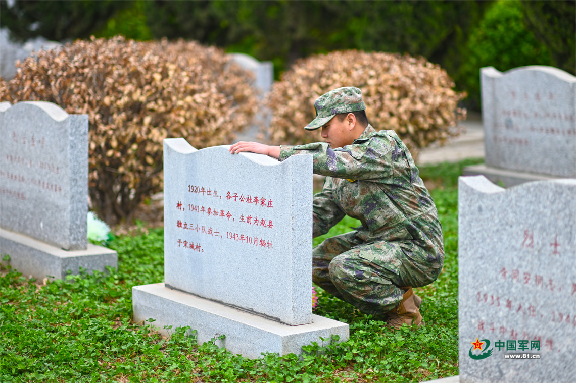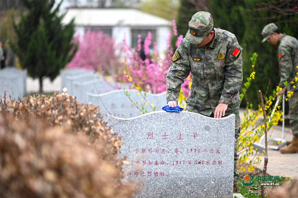 在石家庄赵县六市庄烈士墓园,该部人员组织祭扫活动,在集体向抗日战场上牺牲的革命烈士敬献鲜花后,大家有的拿起扫把清扫墓园,有的拿起毛巾擦拭墓碑,用朴实无华的方式表达对革命先烈的无限哀思和敬仰之情。
