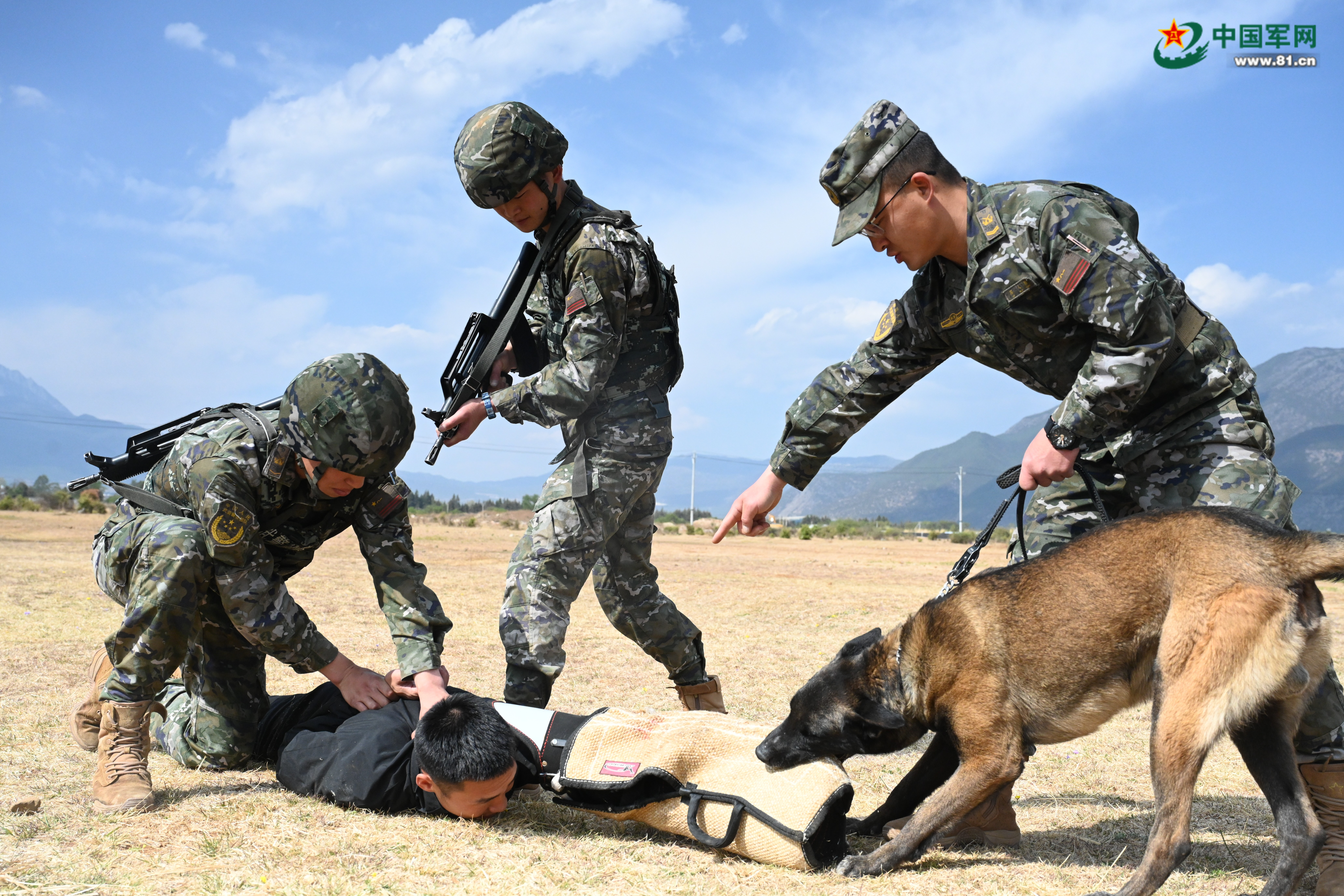 警犬进行解救“人质”课目训练。陈宇翔 摄