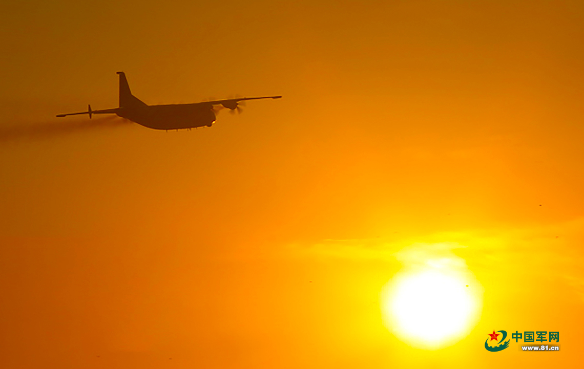 战机迎着夕阳飞赴目标空域。杨健 摄