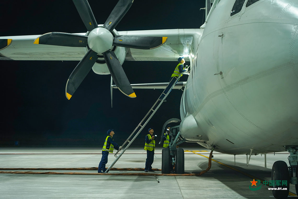 机务官兵进行夜航保障。李杨 摄