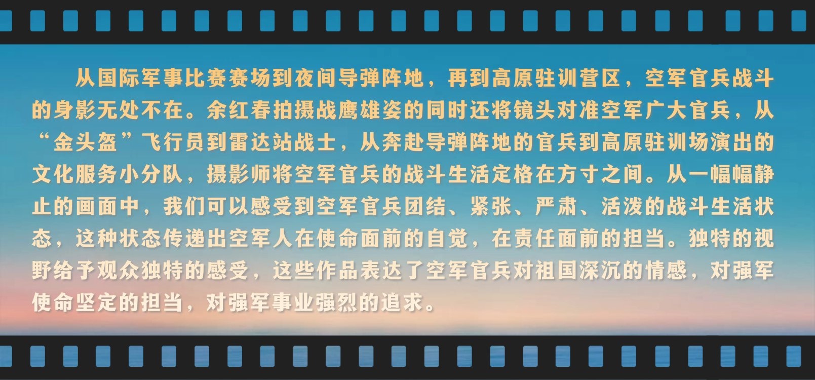 余红春以军人的非凡毅力和高超摄影技能,用镜头见证中国空军装备的日新月异,用镜头记录空军官兵战斗的身影。他的作品在忠实记录空军官兵实战化训练影像的同时,呈现出独特的文献价值,为中国空军的发展留下了珍贵的视觉档案。
