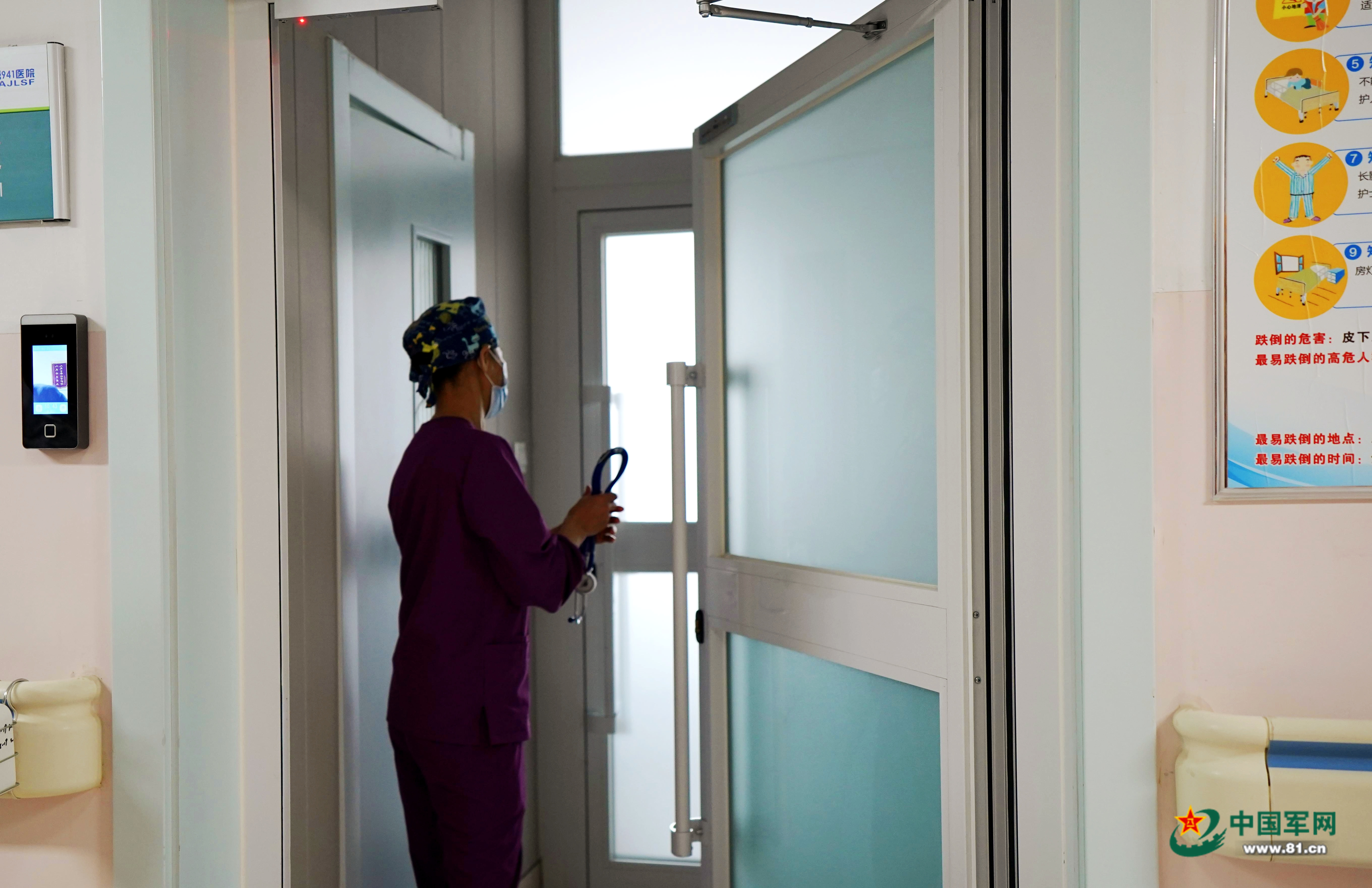 张瑛准备进入病房。中国军网记者 林诗清 摄