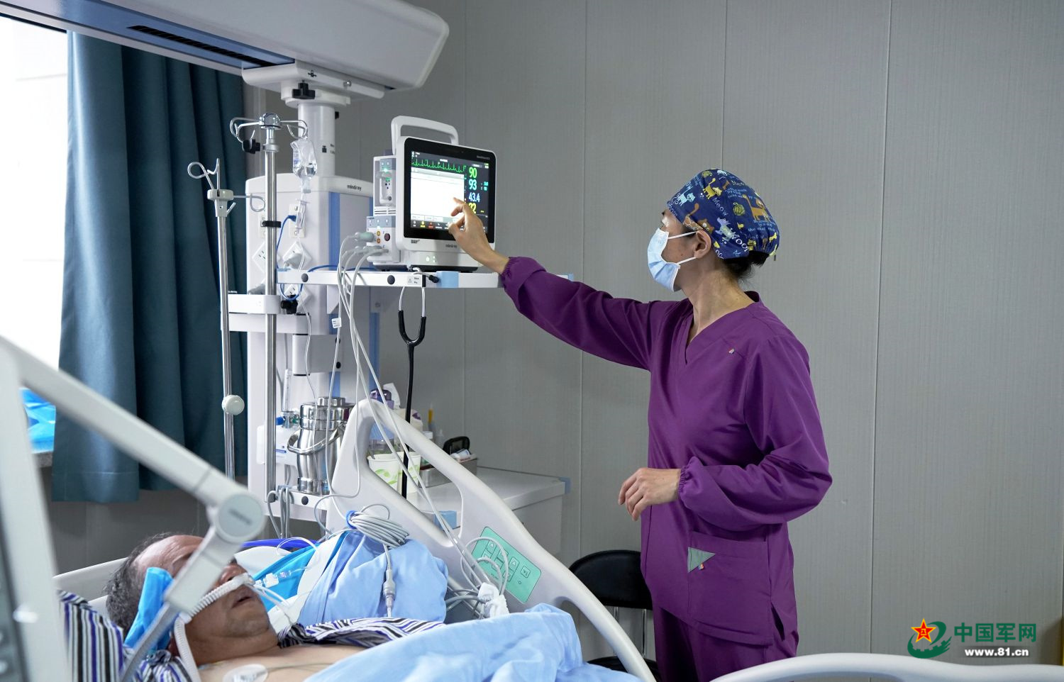 张瑛观察患者情况。中国军网记者 林诗清 摄