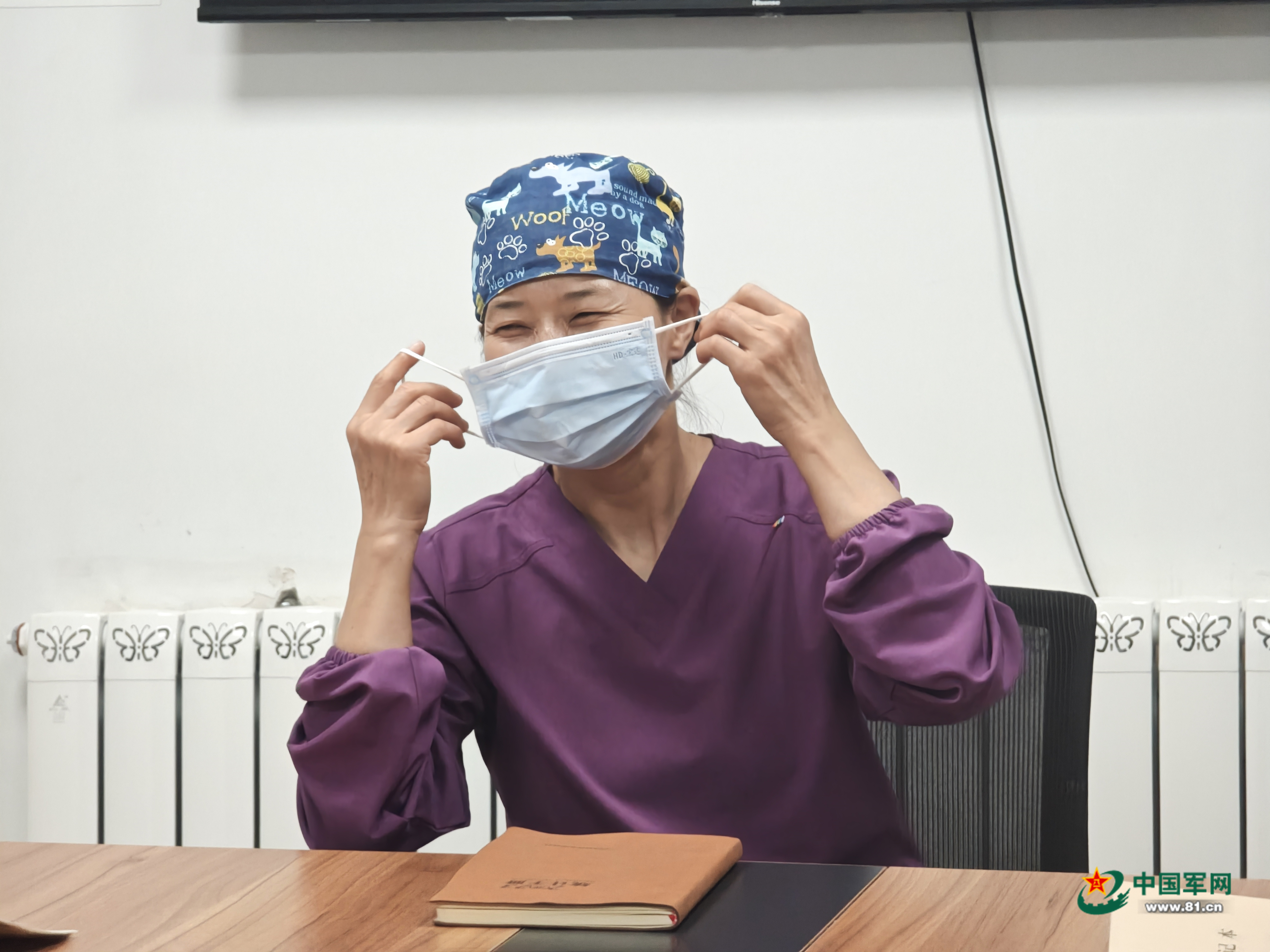 张瑛得知患者情况好转时露出笑容。中国军网记者 林诗清 摄
