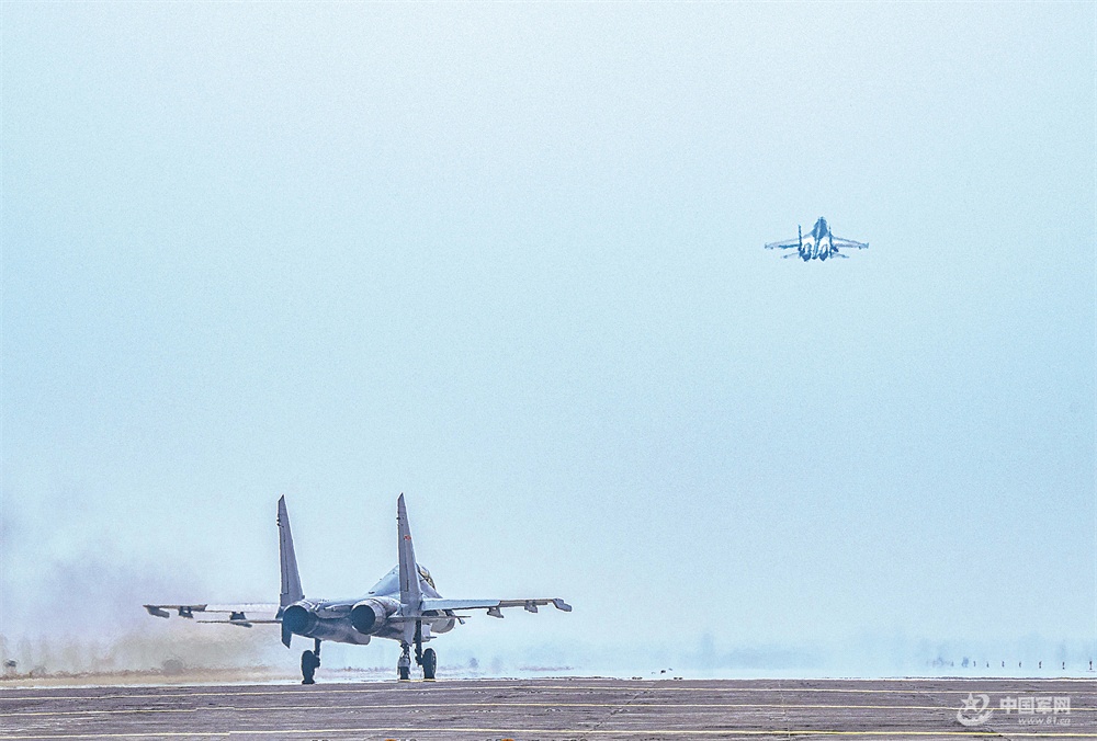 【每天一张新壁纸 “换”醒战斗力】空军航空兵某团开展训练。图为战机接续起飞。