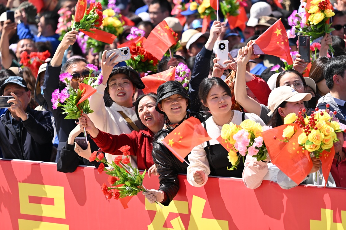 4月24日,神舟二十号载人飞行任务航天员乘组出征仪式在酒泉卫星发射中心问天阁圆梦园广场举行。这是出征仪式上的欢送人群。新华社记者 李鑫 摄