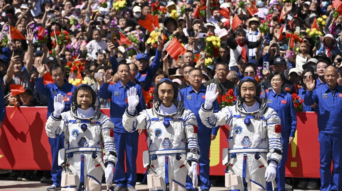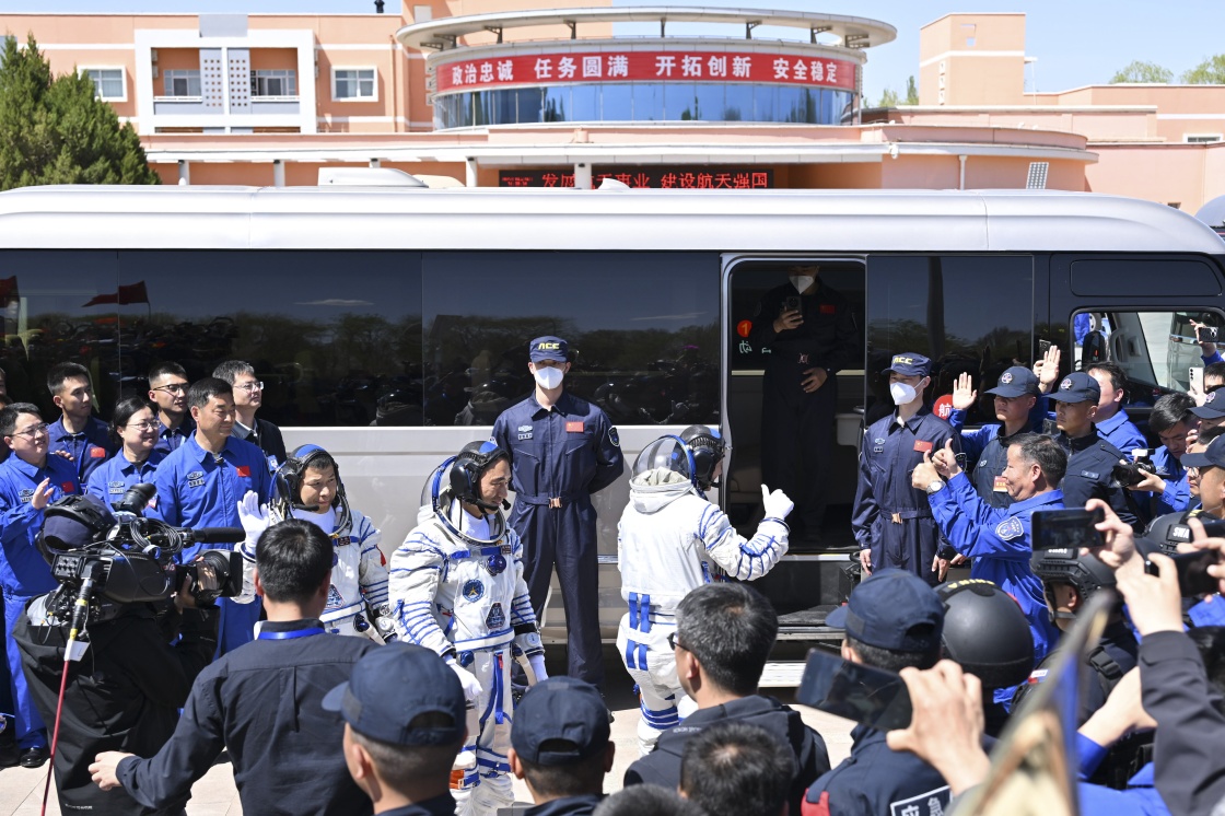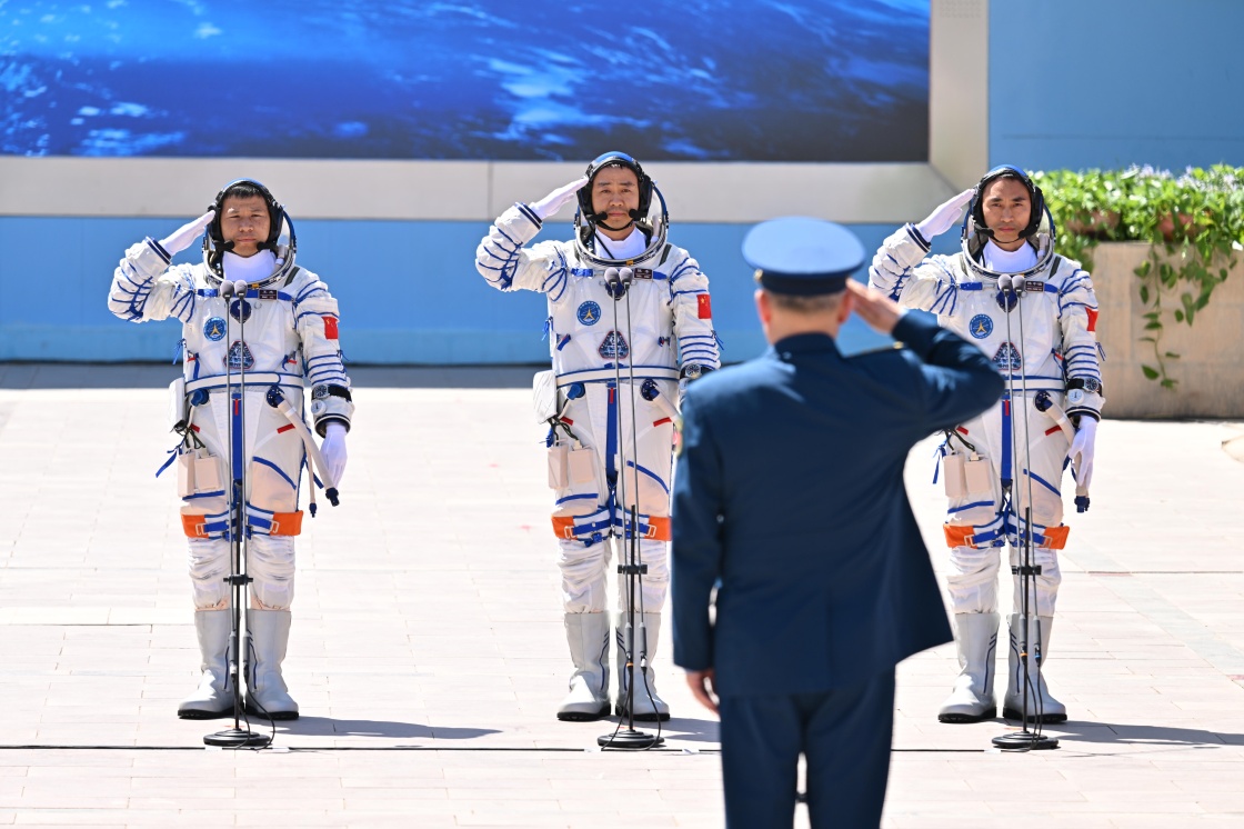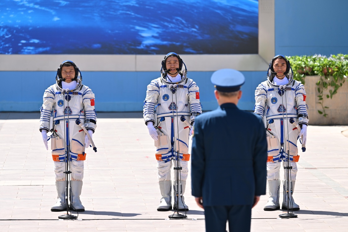 当日14时26分,中国载人航天工程总指挥、空间站应用与发展阶段飞行任务总指挥部总指挥长许学强下达“出发”命令,陈冬、陈中瑞、王杰3名航天员在第十个“中国航天日”领命出征。