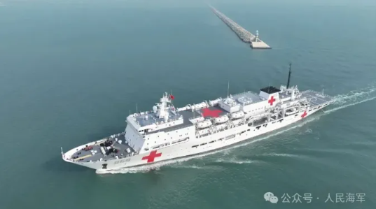 11月13日,海军“吉祥方舟”号医院船完成“健康送海疆”医疗服务任务,靠泊青岛某军港码头。