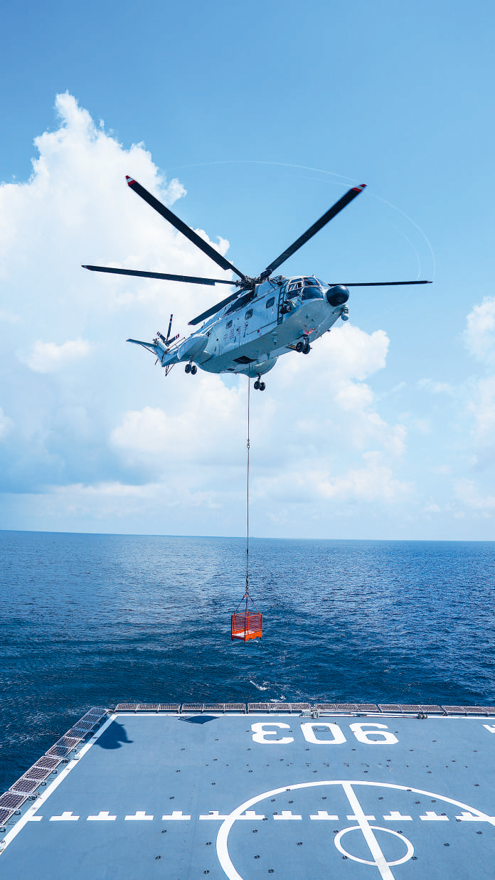 近日,海军航空兵某部与某舰艇部队开展舰机协同训练。