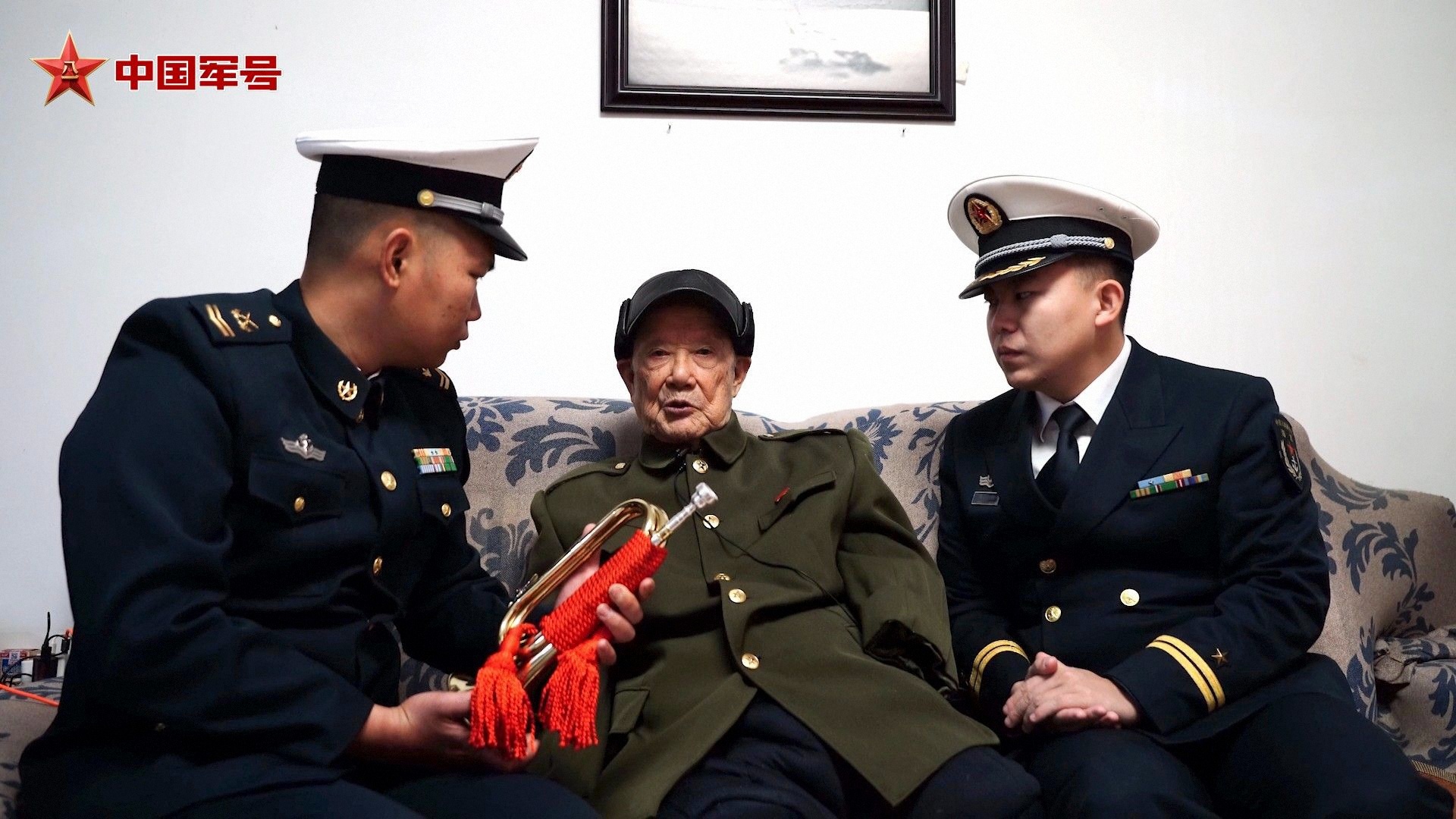 说话间,官兵们拿出了一件特殊的礼物——一把崭新的冲锋号。当锃亮的冲锋号送到周全弟面前,他的双眼泛起光芒,颤抖着抚摸着号身,仿佛又回到了76年前的抗美援朝战场。“当时,只要吹号就义无反顾地冲锋。”简单的一句话,字字铿锵,穿越岁月的硝烟,道出了当年志愿军战士们不畏牺牲、奋勇向前的铁血担当,也藏着他对那段战斗岁月的深深眷恋。