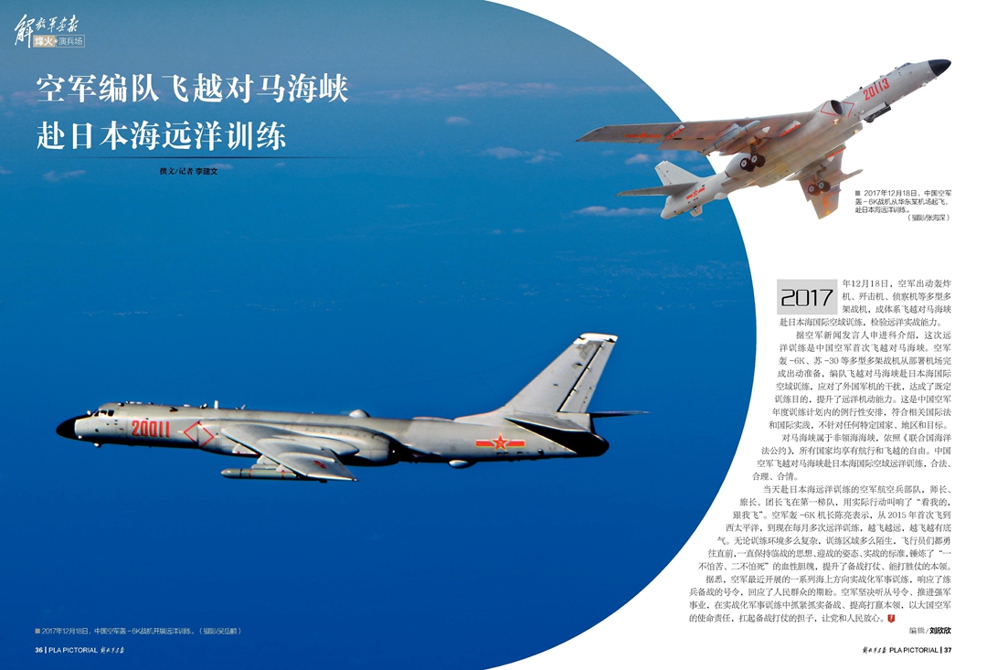 2018年1月上半月刊《空军编队飞越对马海峡赴日本海远洋训练》