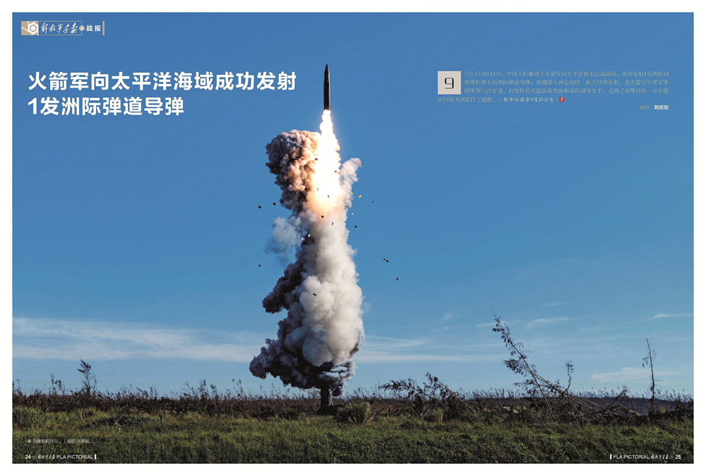2024年10月刊 《火箭军向太平洋海域成功发射1发洲际弹道导弹》