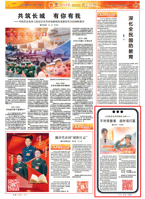 聚焦“平时保健康,战时保打赢”,军队医务工作者如何提升卫勤保障质效?全国政协委员、海军第971医院中医科主任封颖璐,全国政协委员、联勤保障部队第941医院重症医学科主任张瑛,立足各自医疗岗位,将医疗服务对接官兵需求、战斗力建设,确保平时守护官兵健康、战时保障战场打赢。
