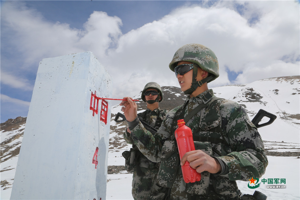 5月1日,驻守帕米尔高原的新疆喀什军分区某边防团托克满苏边防连5名新战士首次到海拔5200多米的界碑巡逻,给界碑描红,向国旗宣誓。托克满苏边防连担负着中阿边境的戍边守防任务,一代代戍边官兵不畏艰苦,牢记职责使命,有效维护了边境地区安全稳定。