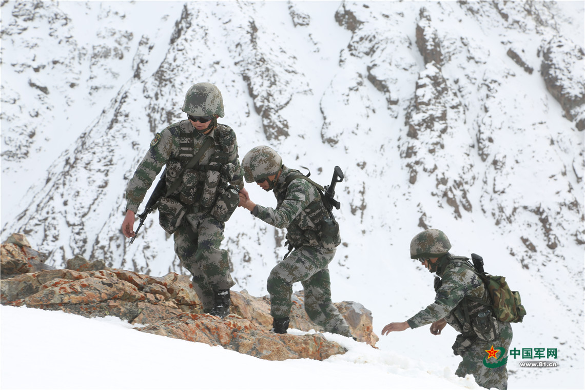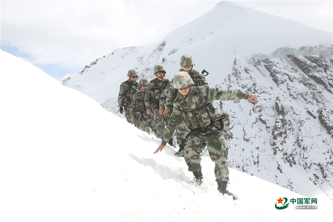 新战士在海拔5200多米的边境线上巡逻。