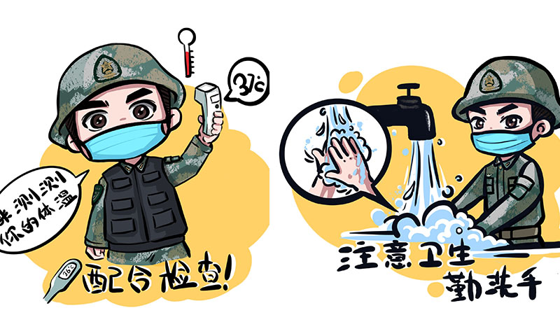 近日,东部战区陆军某海防旅宣传干事许震发挥文艺创作特长,手绘了一组疫情防控表情包,以简单明了、硬核生动的漫画形象,向大家介绍疫情防控的注意事项。
