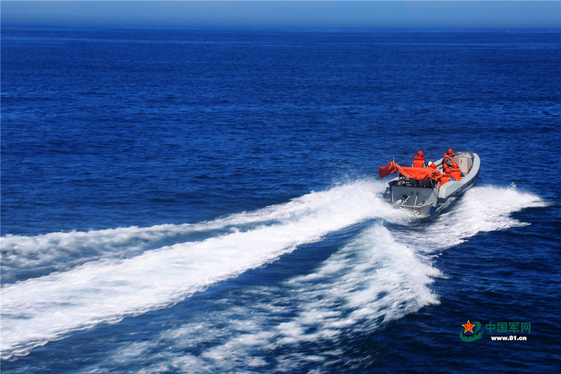7月23日,铜仁舰组织救生小艇海上训练。