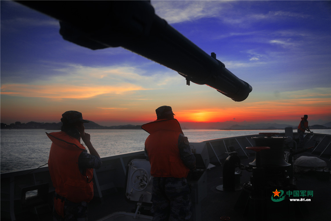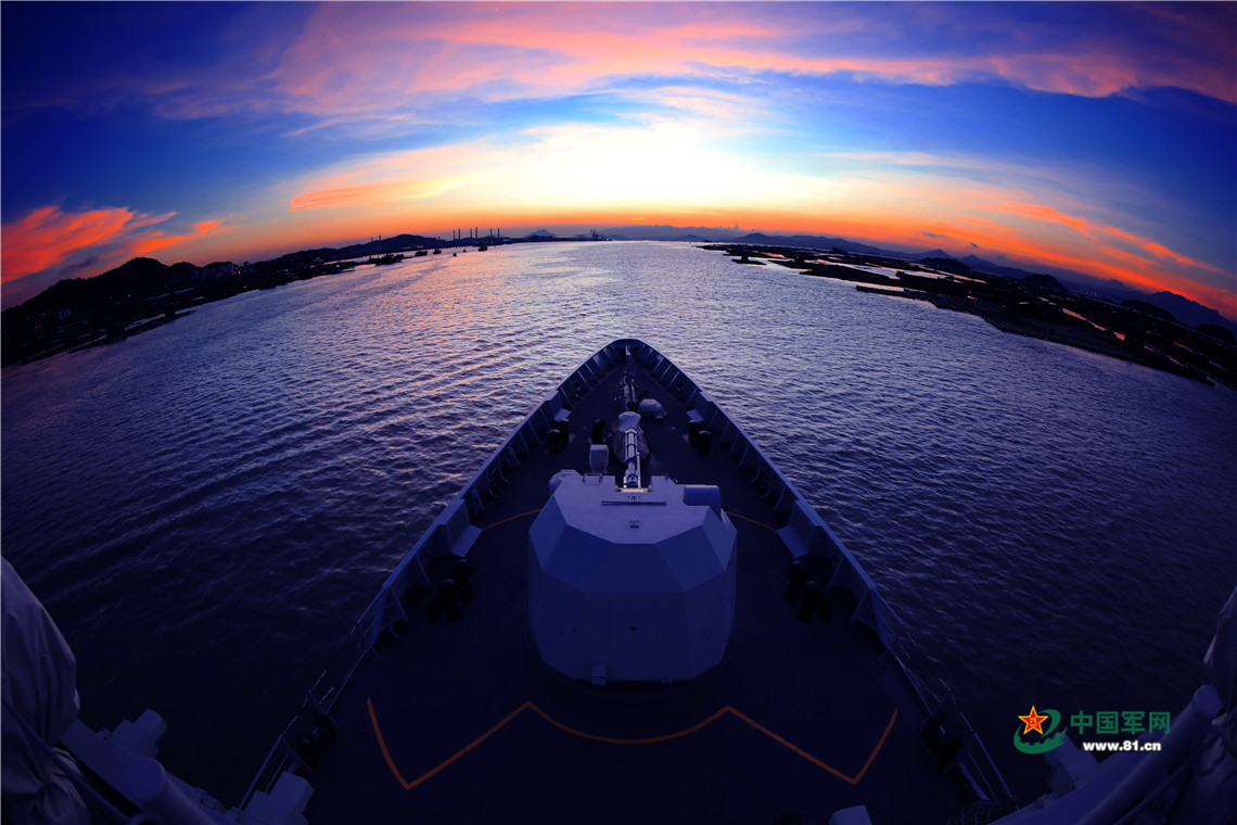 7月23日,编队迎着夕阳出航,拉开夜训序幕。
