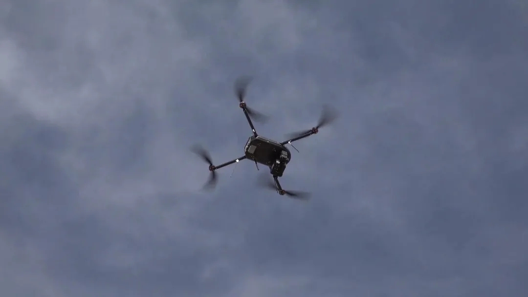 模拟“蓝军”的无人侦察机还未飞抵侦察区域,就被红方的警戒力量发现,防空火力对空开火,将其成功击毁。
