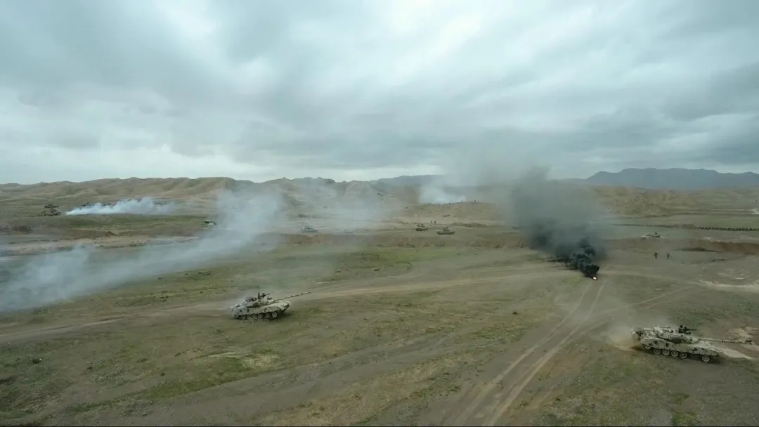 红方各个合成营组成的多路地面突击群不断变换战斗队形,从三个方向对“敌”前沿阵地发起冲击。“蓝军”隐蔽的反装甲火力迅速实施反击。