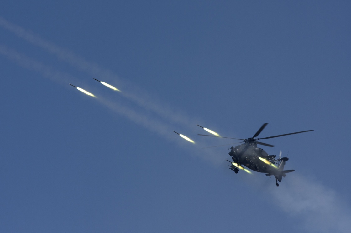 第79集团军某陆航旅组织直-10武装直升机进行实弹射击(资料照片)。新华社发