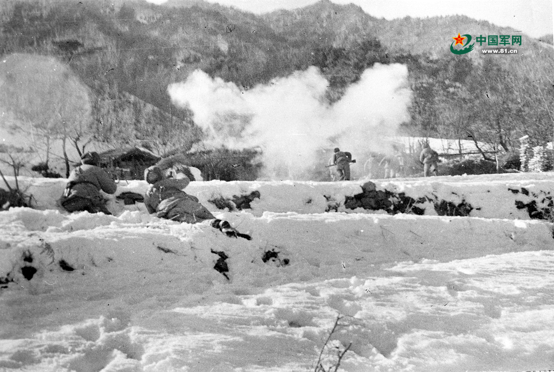 在长津湖战场,志愿军战士爬冰卧雪,强攻敌军的一处山头阵地。