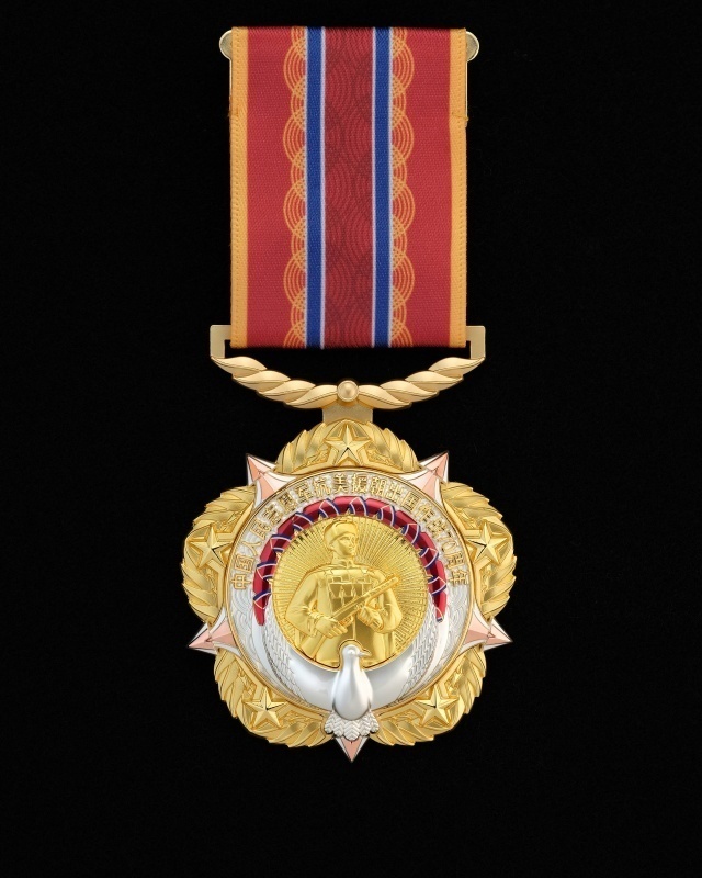 这是“中国人民志愿军抗美援朝出国作战70周年”纪念章(10月3日摄)。新华社记者 李贺 摄