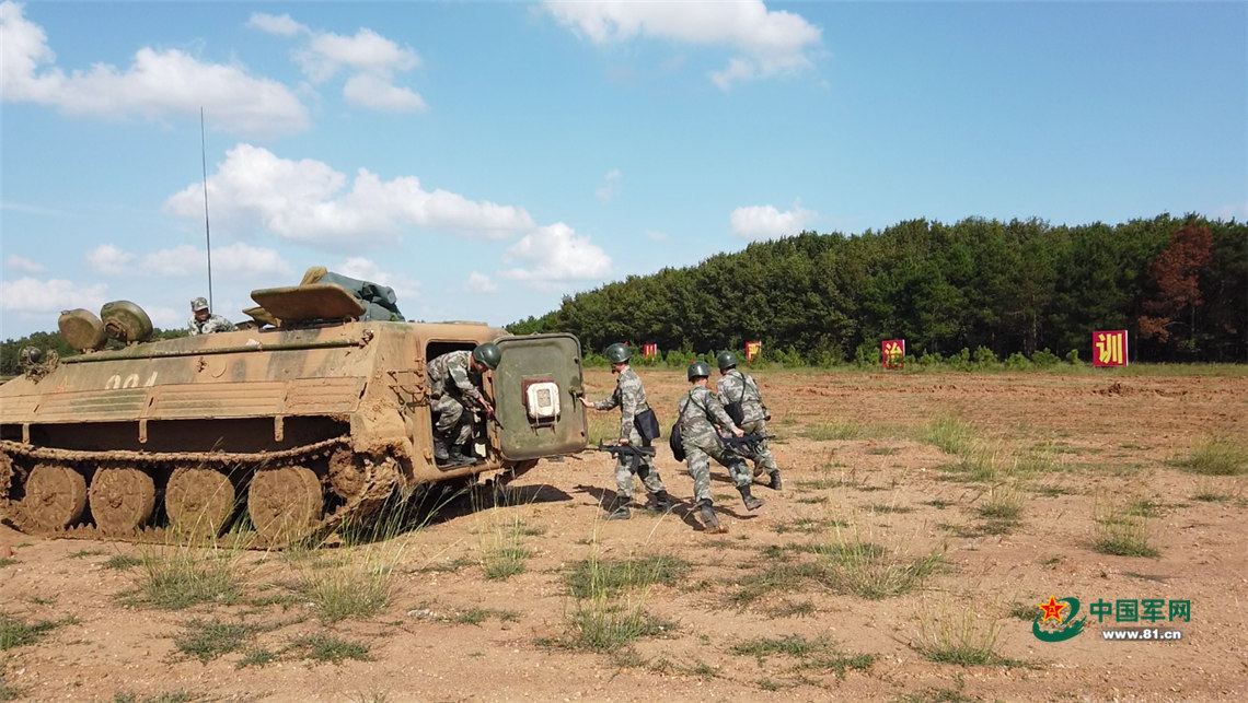 学员进行步战车登车训练。