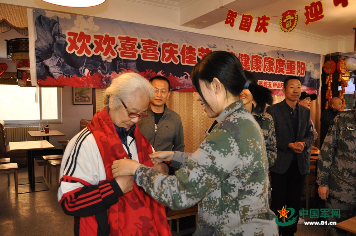 九九重阳节,浓浓敬老情。重阳节来临之际,北京卫戍区西城第五离职干部休养所开展形式多样的爱老敬老系列活动。通过献围巾、猜灯谜、送营养餐、联系供应站上门服务等活动为老人们送去节日祝福,营造尊老、敬老、助老的浓厚氛围。(许峰 杨柳青 林海生 摄影报道)