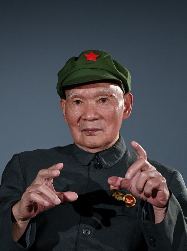 在广东省佛山市拍摄的志愿军老战士黄玉君(9月25日摄)。新华社记者 刘大伟 摄