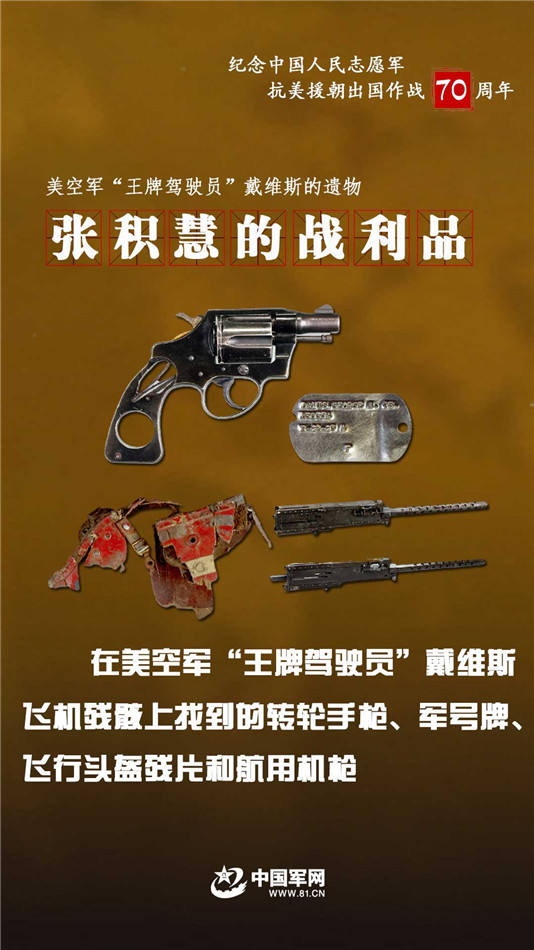 美空军“王牌驾驶员”戴维斯的遗物,在被张积慧击落的戴维斯飞机残骸上找到。