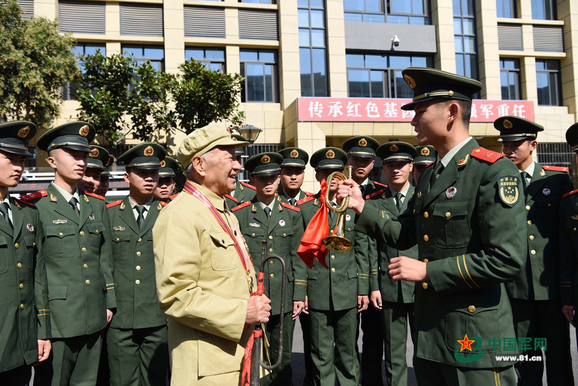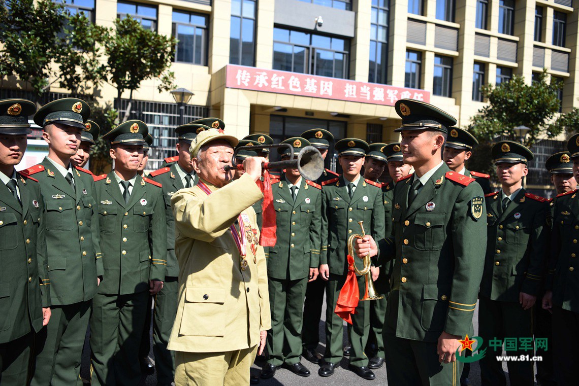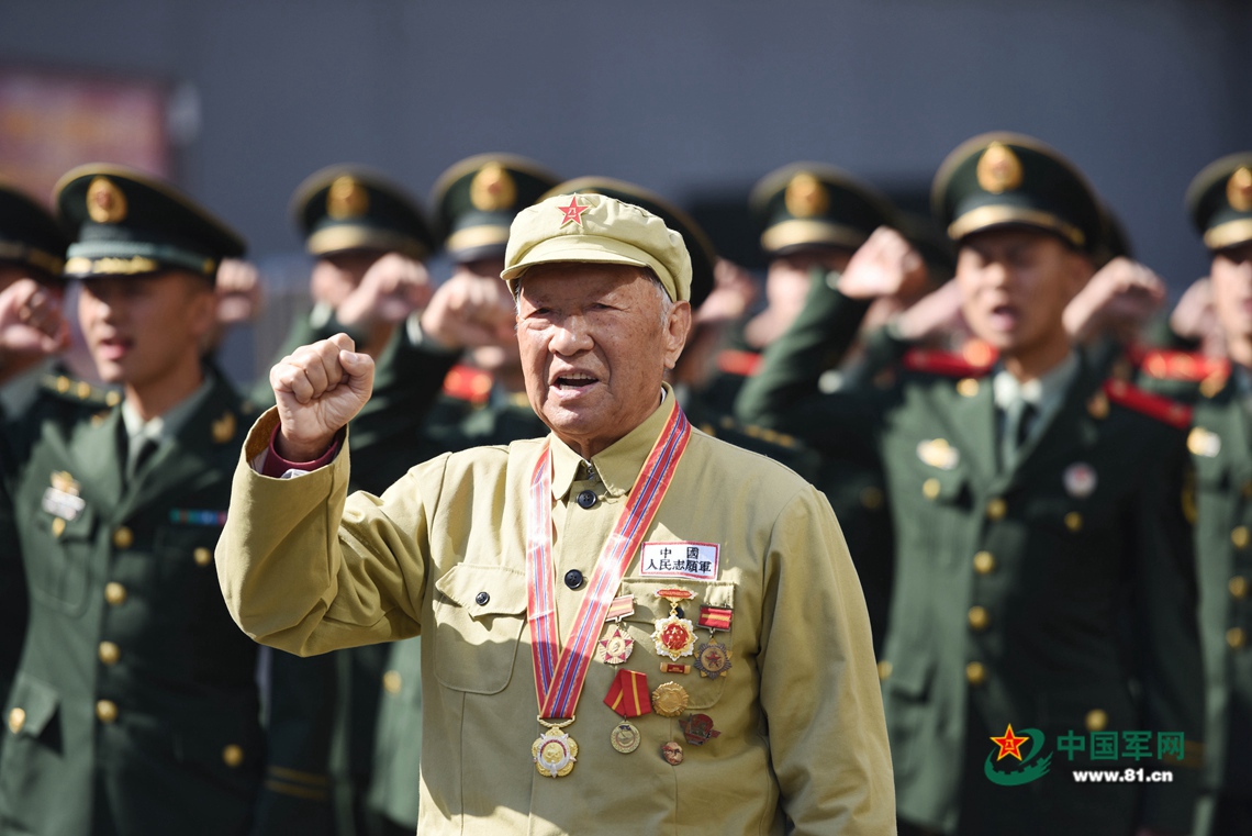 如今郑尊礼虽然年龄大了,但却从未忘报国之志。“英勇顽强,不怕牺牲,苦练杀敌本领,时刻准备战斗……”郑尊礼和官兵们郑重举起右拳庄严宣誓,铿锵有力的誓言在营区久久回荡。
