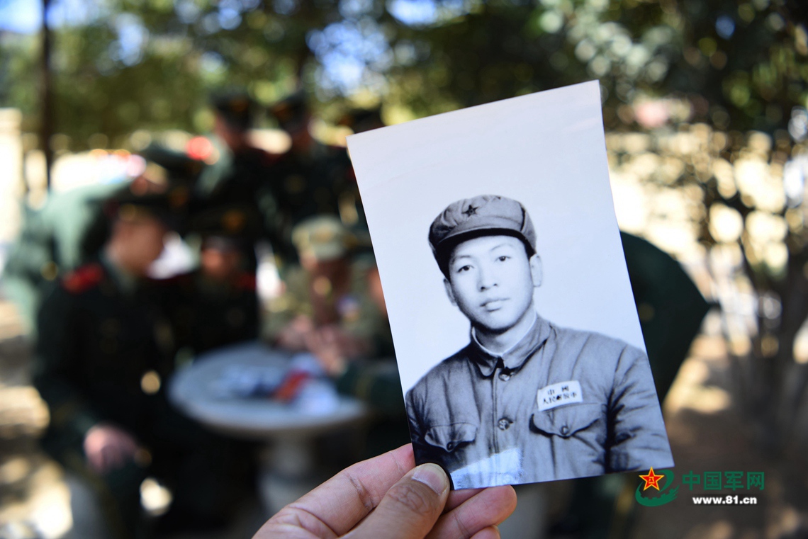 拿着老照片,郑尊礼向官兵们讲述照片上的故事。