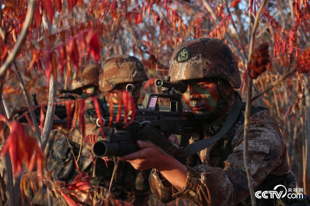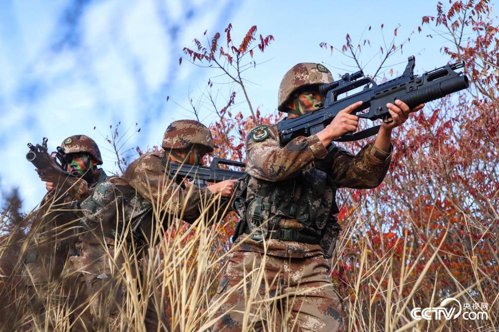 图为交替掩护搜索前进。(王磊、周家俊、张新年 摄影报道)