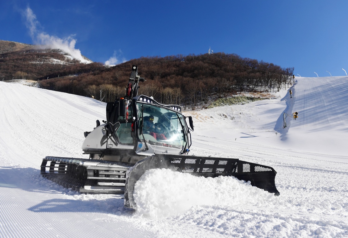 12月29日,工作人员在国家高山滑雪中心雪道上操作压雪车。新华社记者 张晨霖 摄