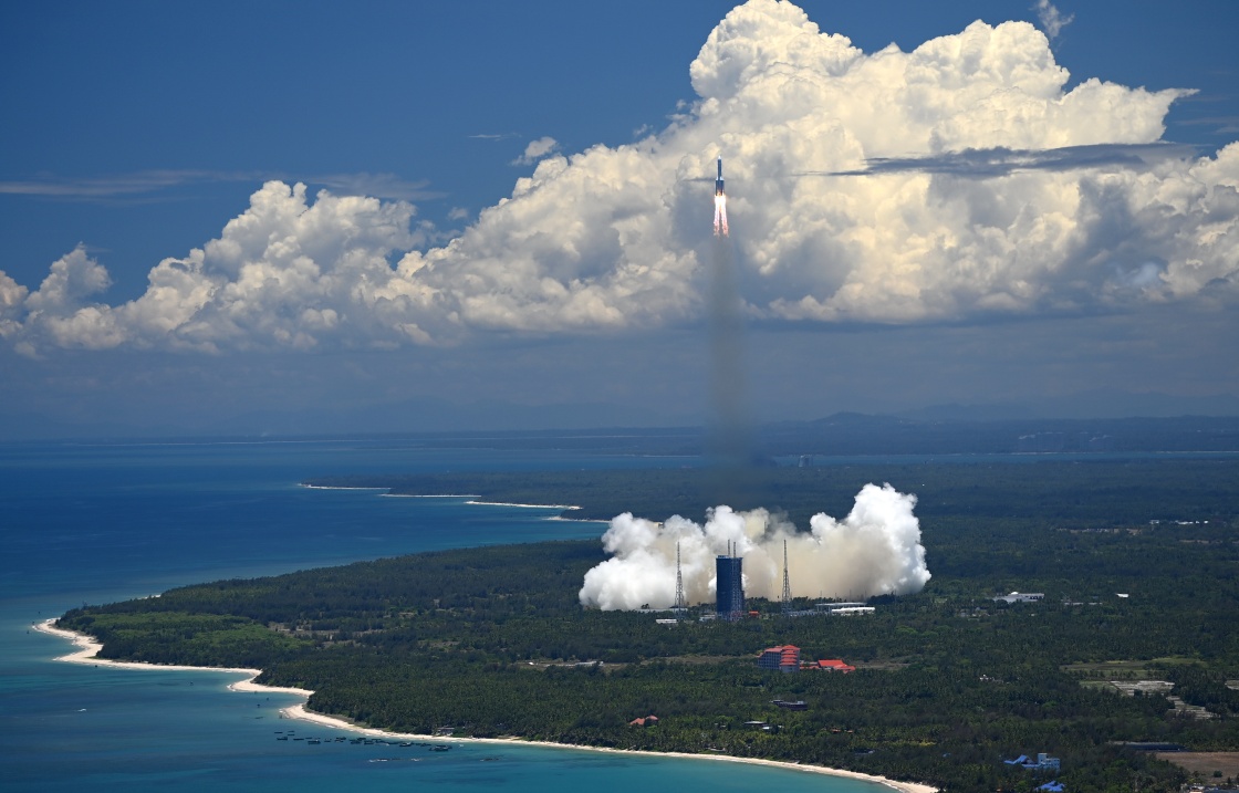 这是7月23日,中国“天问一号”火星探测器搭乘长征五号遥四运载火箭升空,开启中国首次自主火星探测任务。新华社记者 郭程 摄