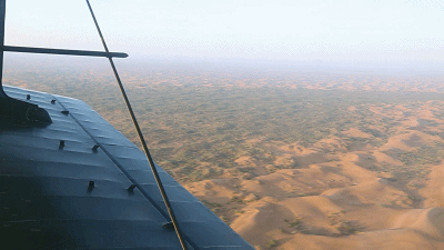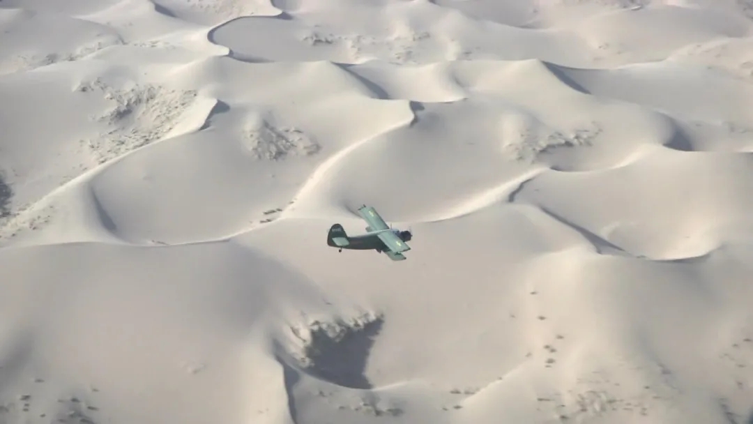 截至去年,该大队已在这里飞播作业581万亩,形成总长460公里、宽3至20公里的两条生物治沙“锁边”带,斩断了两大沙漠的“握手”之势。