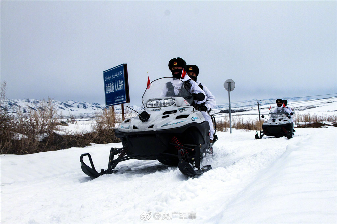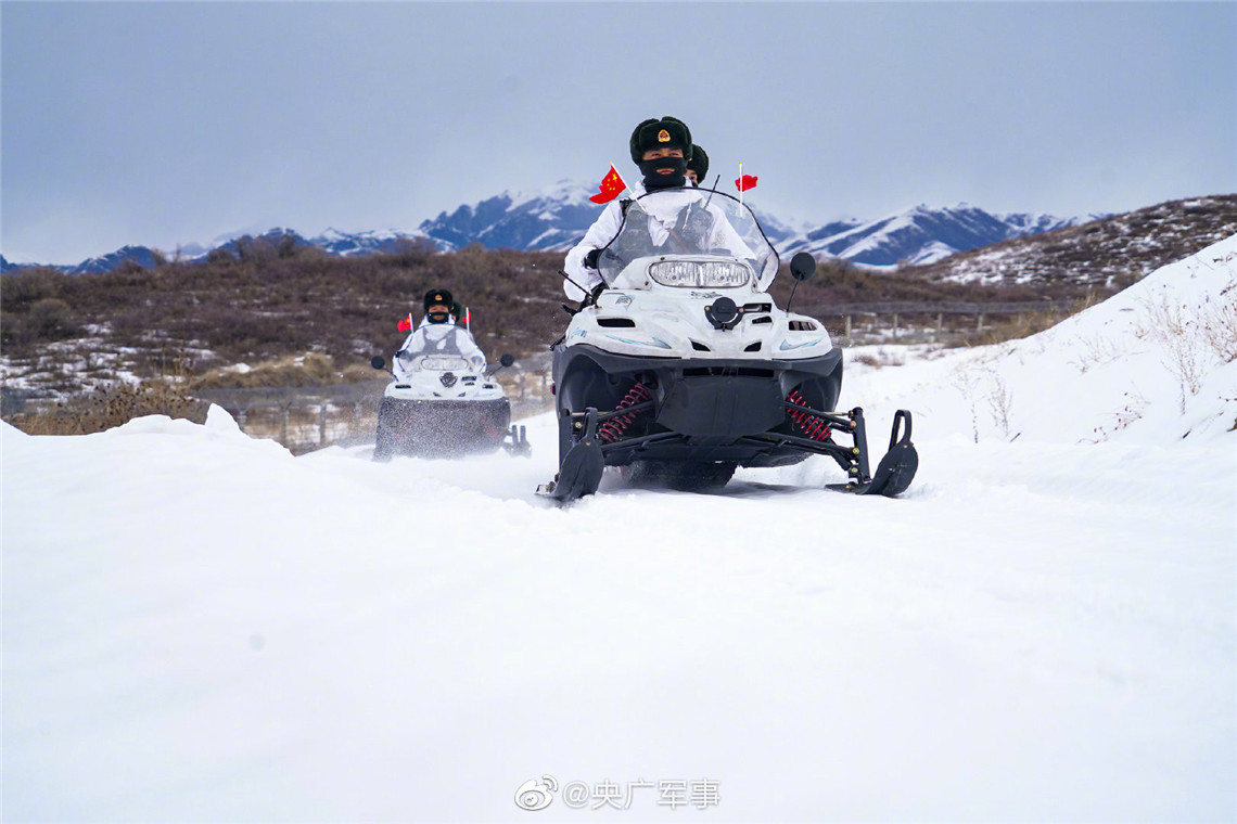 【新疆边防官兵骑摩托雪橇巡逻】近日,新疆军区某边防团卡梅斯台边防连官兵骑摩托雪橇巡逻。翻雪山、过达坂、上哨楼,官兵们沿途对防区监控设施、受损铁丝网进行检查维护,确保春节前后边境设施运行良好。#2021新春走军营# (钞飞航 肖文鑫 肖攻 邓卫东)