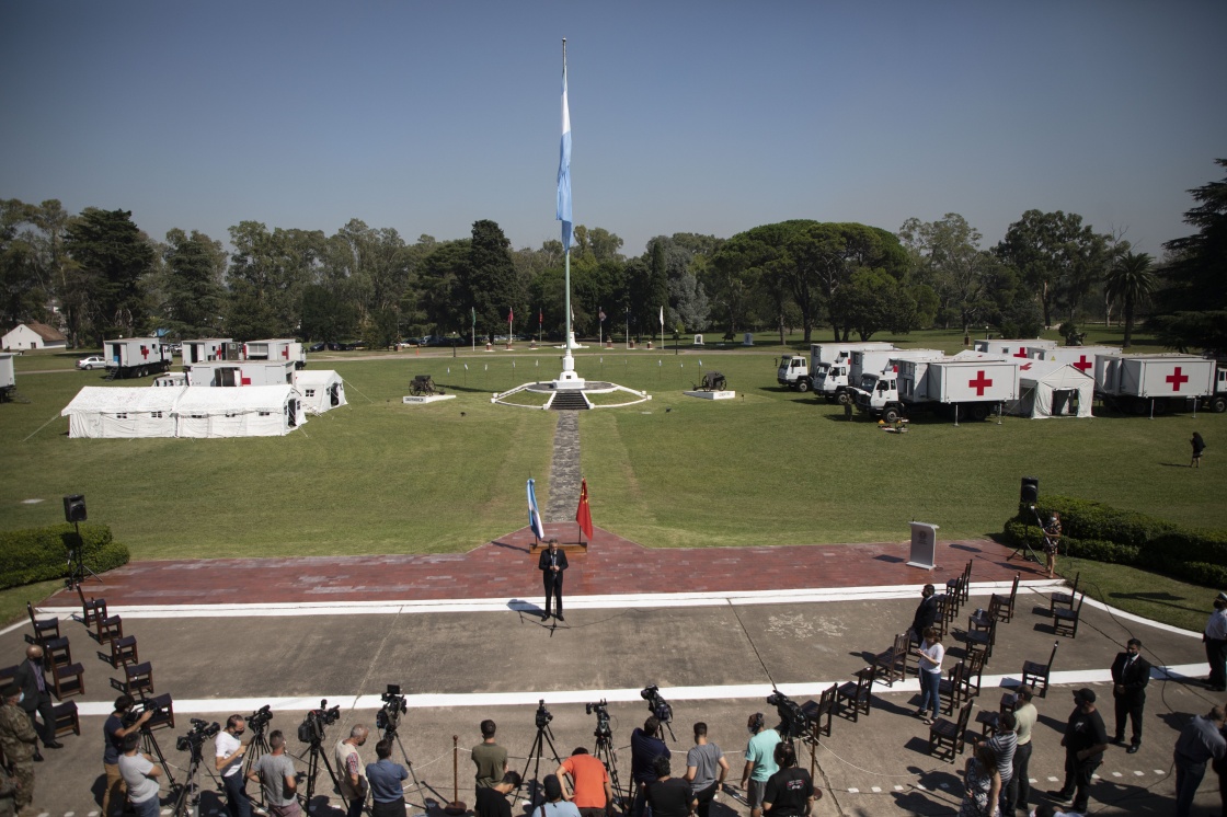 中国国防部援助阿根廷军队一座野战医院的交接仪式25日在布宜诺斯艾利斯市郊区五月兵营举行。