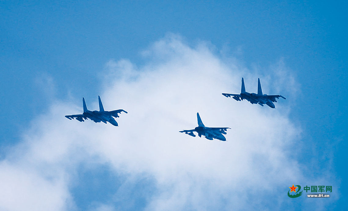 飞行员雷鸣和高科峰驾机升空后,立即与担负支援掩护任务的另一架战机组成3机突击编队,准备突袭“敌”海上目标。