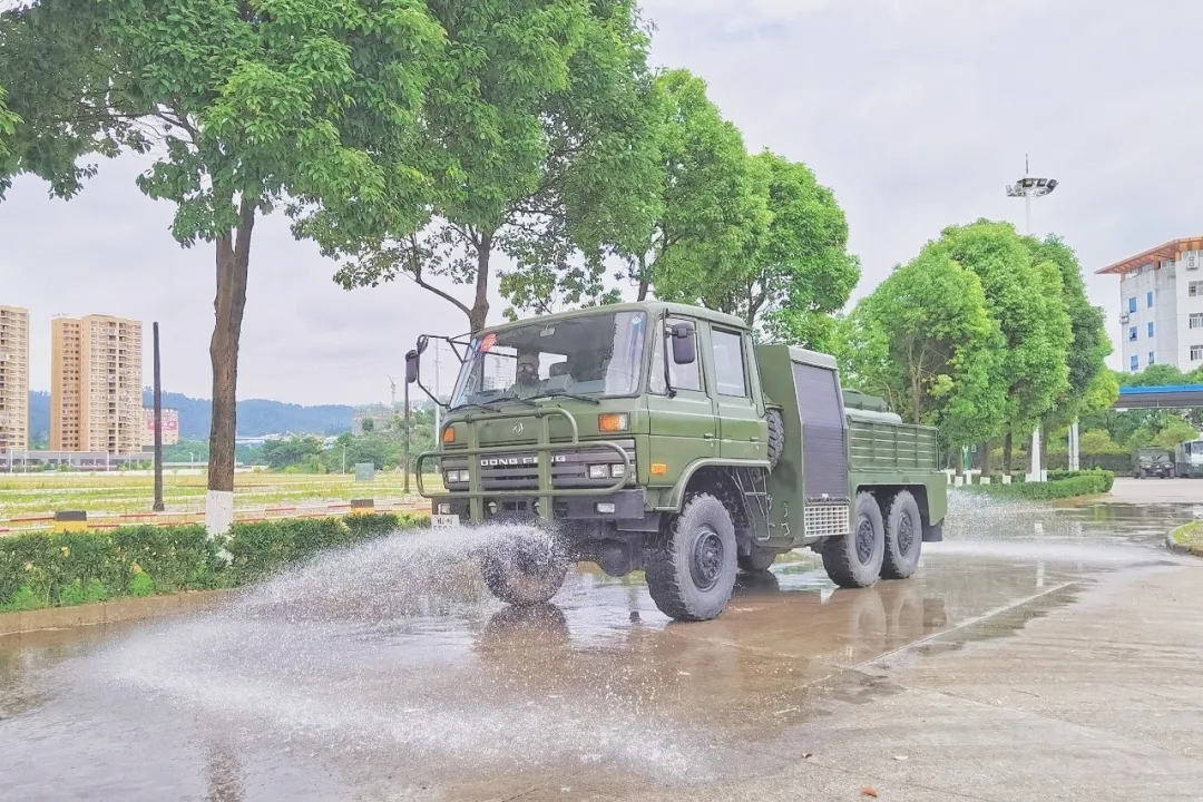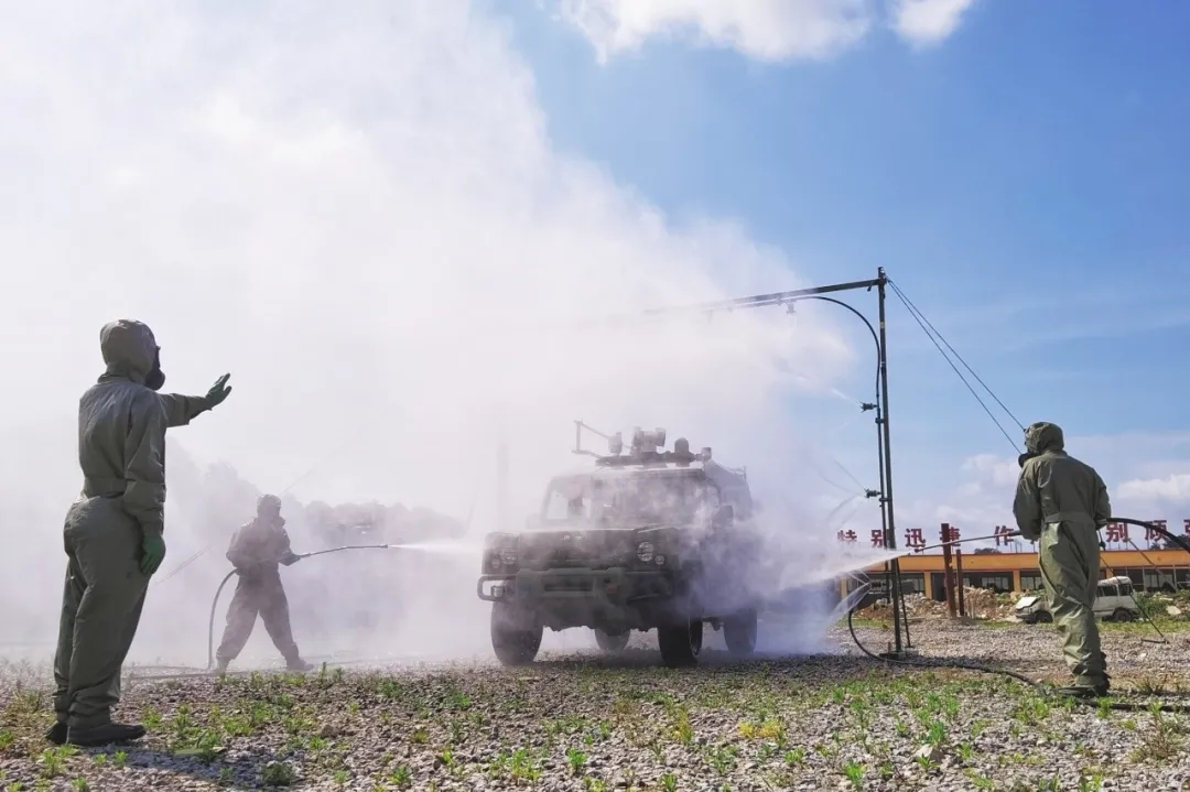 接到命令后,组长葛鑫鑫迅速带领洗消一组乘坐喷洒车实施地域洗消,洗消二组利用便携式洗消器对核心污染区实施集中洗消,装备洗消及人员自消等后续工作相继展开。随着烟雾慢慢消散,事态逐渐平息下来,一场化学事故应急救援处置行动演练圆满结束。