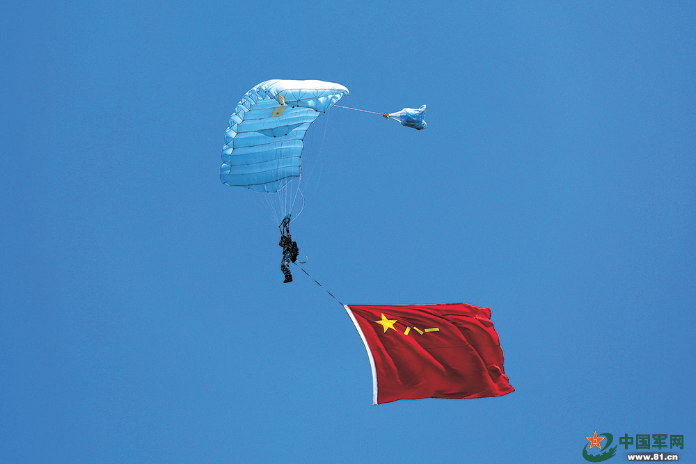 正在进行伞降实跳训练的空降兵某旅官兵以特有的方式庆祝自己的节日。 盛 超摄