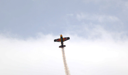 5月25日,国内第一支无限制级特技飞行队——中国红牛特技飞行队在河南安阳航空运动文化旅游节上首次亮相,中国飞行员赵伟与队友们出色完成特技飞行表演。